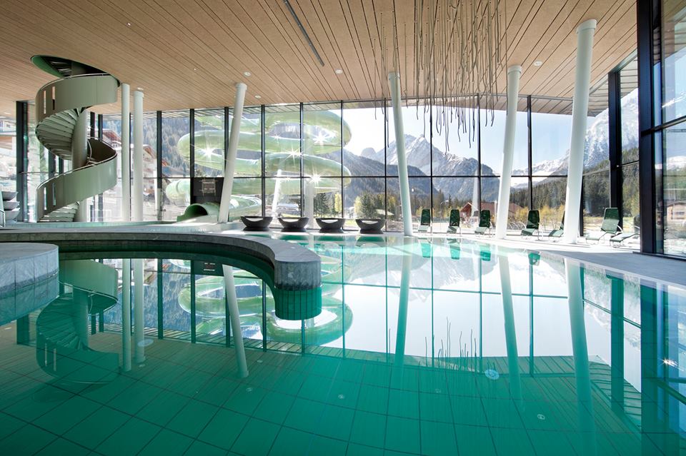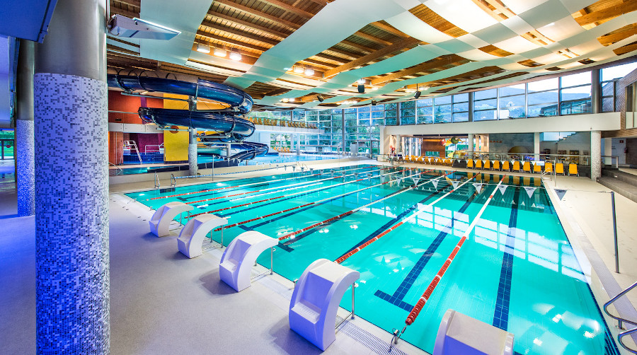 Il centro acquatico di Canazei dotato di una piscina semi-olimpionica a 5 corsie, una vasca “fun” con lettini idromassaggio, docce nucali, nuoto controcorrente, di forma ellittica, con vortice di acqua in movimento, una zona kids arricchita da una grotta illuminata, cascata, scivolo; una vasca di arrivo dello scivolo esterno di ben 111 metri di lunghezza e una piscina salina esterna con lettini idromassaggio e docce nucali. Tutte le informazioni: Dòlaondes a Canazei: piscina vista Dolomiti.