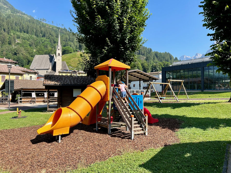 Alla fine del paese c’è un’altra area giochi con scivoli, altalene e dondoli, carina per una breve sosta.