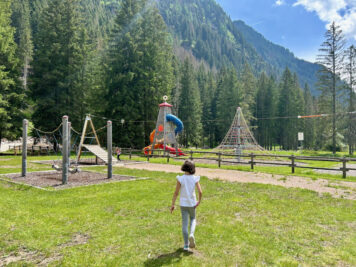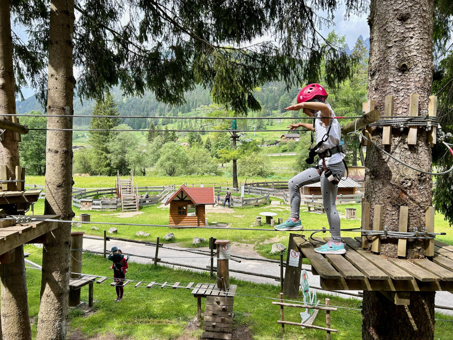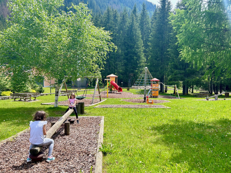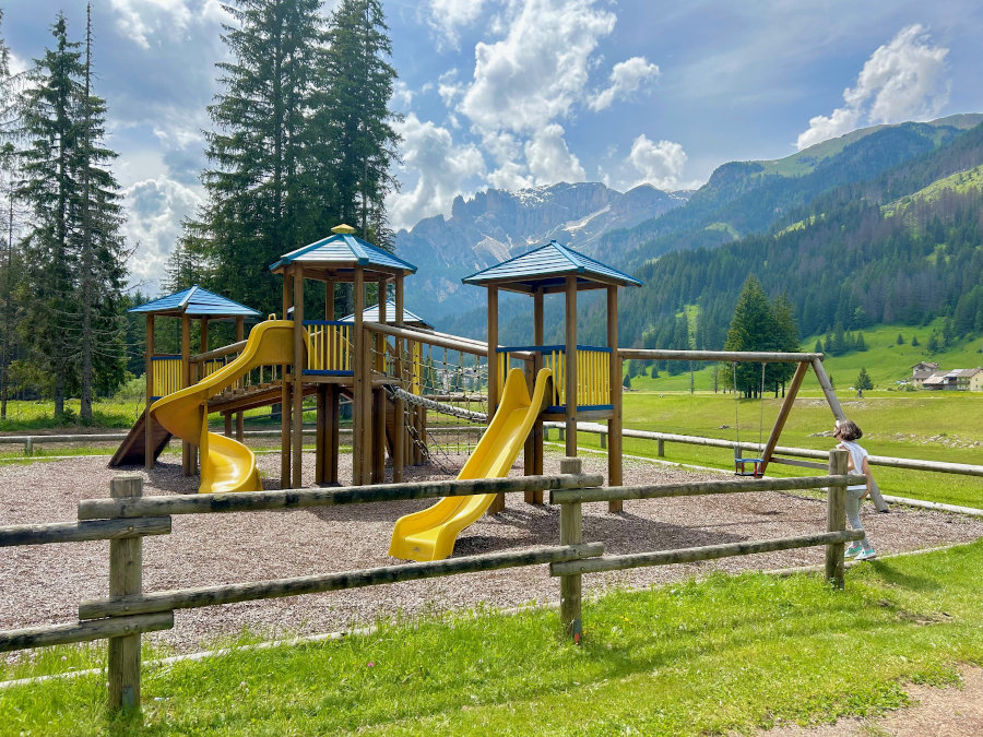 Molto carino anche il parco giochi di Soraga e davvero unico quello di Moena disposto su tre livelli con strutture via via sempre più complesse e articolate.