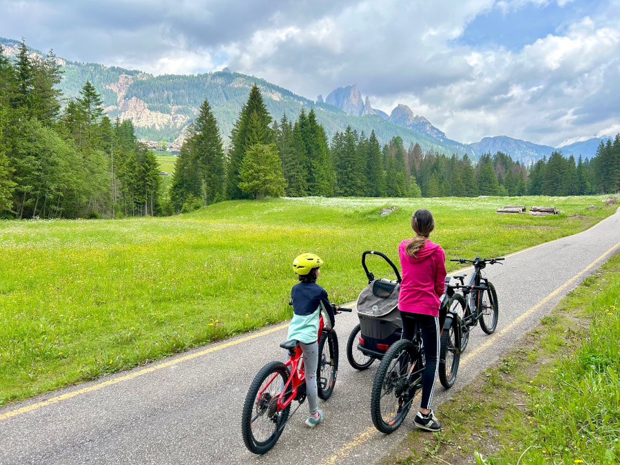 Il tratto più indicato per i bambini piccoli è senza dubbio quello in Val di Fiemme, in particolar modo da Predazzo al Cermis: 15 chilometri con dislivello minimo in mezzo a prati sconfinati. Punti di interesse sul percorso: i parchi avventura Adventure Dolomiti (Molina di Fiemme), il Suan Park (Ziano), l’Avisio Park (Cermis); i maneggi alla partenza dell’ovovia del Cermis.