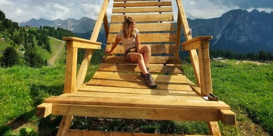 Al Buffaure la bellezza ha fatto centro! Non solo la meraviglia delle montagne più belle a far da cornice sullo sfondo, ma anche tante incredibili installazioni artistiche in legno dell’artista Franz Avancini: panchine, sdraio sagomate e troni giganti, perfettamente integrati nell’ambiente naturale, per rendere ancora più piacevole il panorama.
