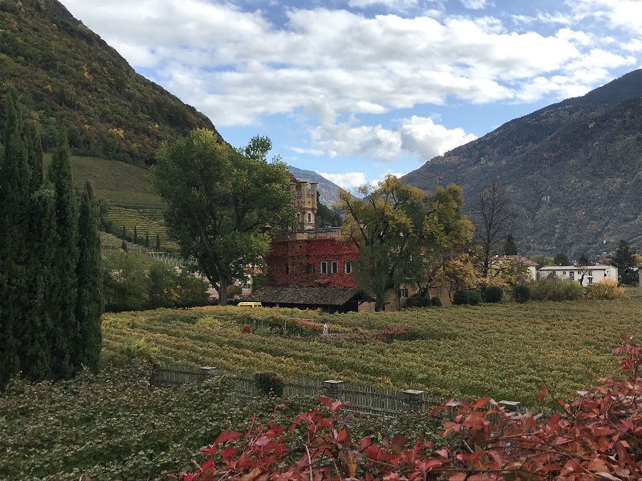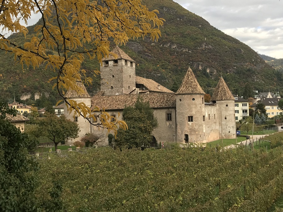 Bellissimo dopo poco sulla nostra sinistra Castel Mareccio, antico e affascinante maniero del XII secolo in mezzo ad un vigneto di uve pregiate.