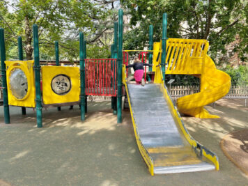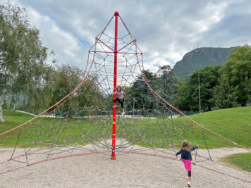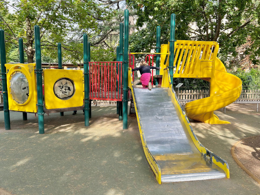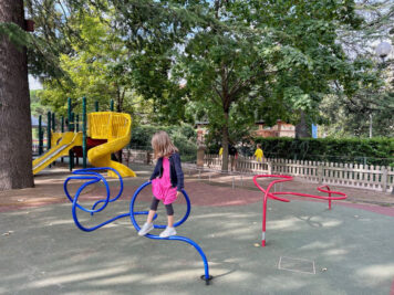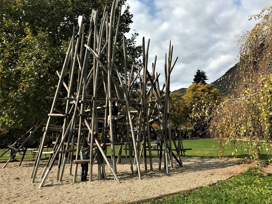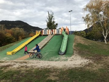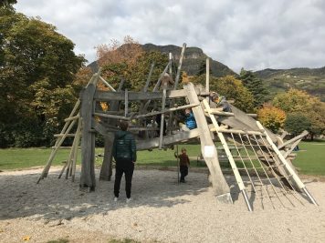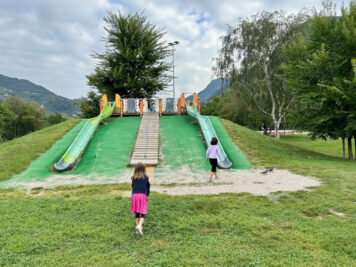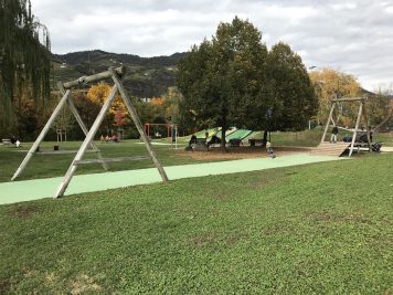 Come anticipato ecco le prime attrazioni per i bambini con comode panchine per i genitori e ampi prati verdi tutt’intorno. Ci sono delle costruzioni in legno da scalare e due aree recintate con diversi giochi: scivoli, sabbiera, altalene e molto altro… ma soprattutto è un parco giochi inclusivo.