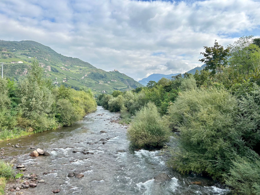Se invece non volete arrivare fino a Castel Roncolo, dopo pochi minuti dalla pista per le biciclette troverete il ponte Sant’Antonio. Lo oltrepassiamo godendo di una meravigliosa vista sul fiume Talvera e scendiamo dalla parte sinistra del fiume seguendo il Lungo Talvera Bolzano.