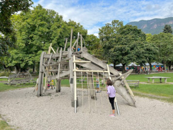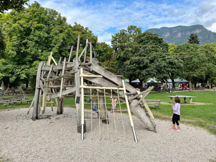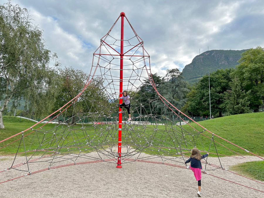 Quella che si estende lungo le rive del Talvera, il fiume che scorre a poca distanza dal centro di Bolzano, è un’enorme area verde che attira costantemente tantissime famiglie e bambini. Numerosi i parchi gioco, dai classici scivoli e altalene a grandi costruzioni in legno da scalare e ai gettonati tappeti elastici. E poi la pista ciclabile, lo skate park, il minigolf… Qui è possibile portare anche gli animali, con le adeguate regole.