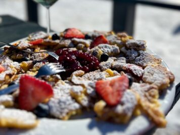 Se la fame chiama niente paura: tornando indietro (stesso sentiero dell’andata, l’8B e poi l’8A) troverete aperta la Ütia Cir (tel. 338.5885808 ), a pochi metri dal parcheggio. Qui davanti hanno il quartier generale anche i cani da slitta, quindi impossibile sbagliare. Ci sono tavoli e sdraio all’esterno, ideali per godere dei caldi raggi di sole e tenere d’occhio i bimbi che si divertono con gli slittini. Coccoloso e romantico invece l’interno: piccolo e accogliente, tutto in legno, perfetto per le giornate più fredde. Qui potrete gustare i deliziosi piatti cucinati da Otto. Qualche esempio? Speck con uova e patate, canederli e un kaiserschmarren che noi adoriamo! La baita è aperta per la stagione invernale fino a fine marzo!