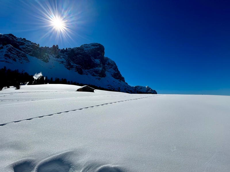 - Halslhutte: passeggiando o con gli sci da fondo dal Passo delle Erbe si percorre la strada verso la Val di Funes, trasformata in pista da fondo, fino a questo rifugio. Qui trovate il racconto: Dal Passo delle Erbe al Halslhütte