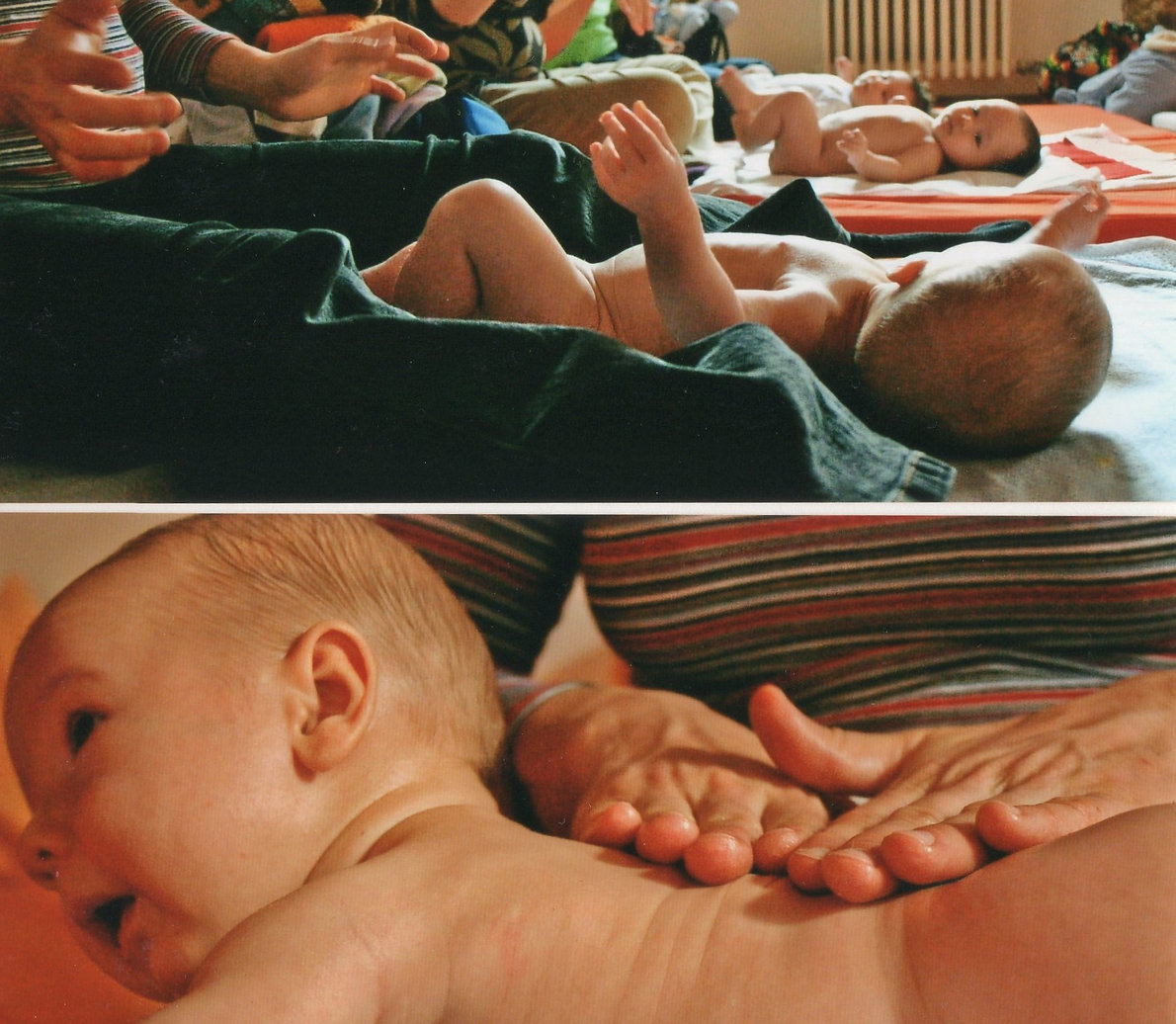 La parte esperienziale prevede che durante il percorso vengano accolte delle coppie di neo genitori con il loro neonato, così da aver modo di osservare cosa accade nella relazione e nel massaggio in presenza in modo consapevole.