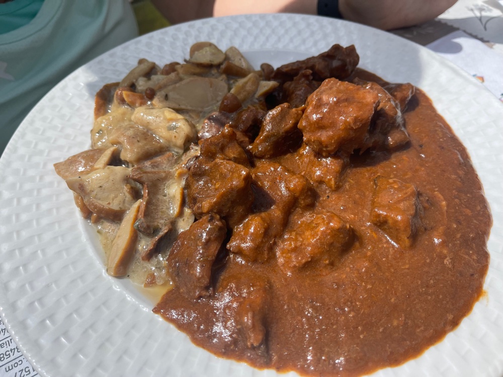 Diciamo che i pochi metri necessari per arrivare saranno l’unica salita della giornata, quindi vale assolutamente la pena, almeno per una fetta di dolce e per avere una diversa prospettiva. Noi abbiamo provato la polenta ed i canederli: semplici ma molto gustosi.