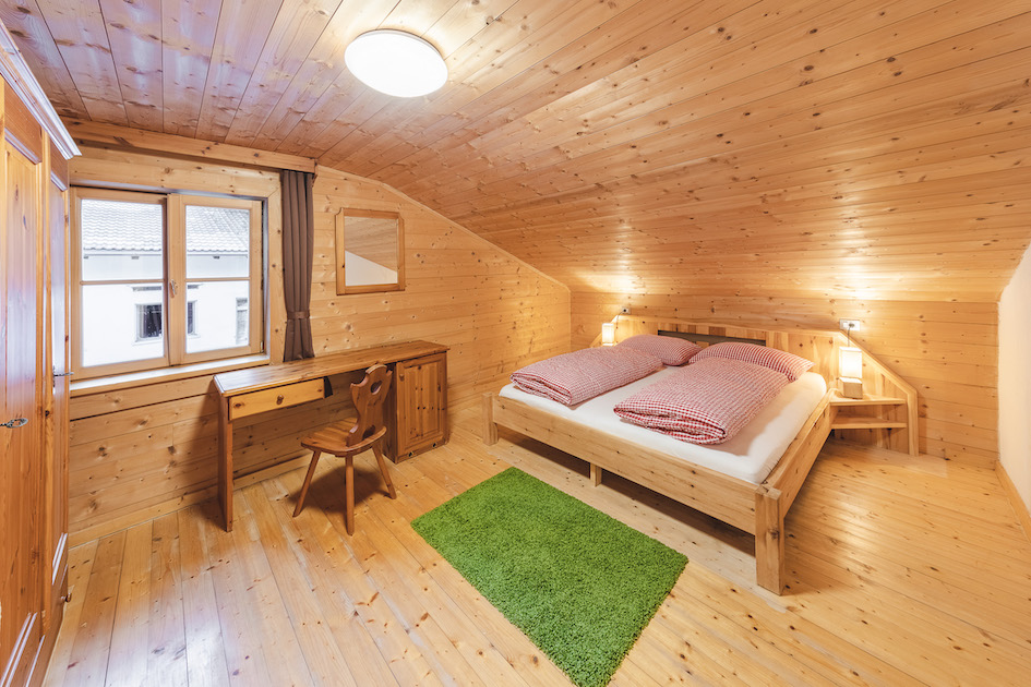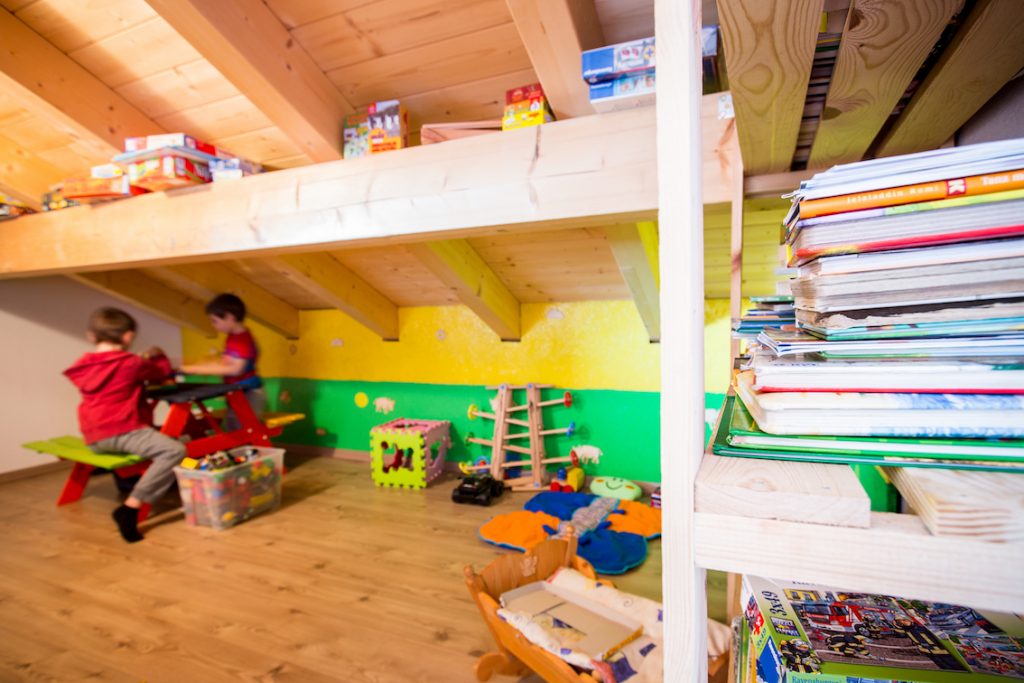 Molto interessante anche la stube in comune, che permette anche a diversi nuclei familiari in vacanza insieme di trascorrere il tempo libero – oppure il pranzo e la cena – insieme. I bambini si divertiranno moltissimo nella grande area giochi posizionata nel fienile (e quindi disponibile anche in caso di maltempo), con ping pong, trampolino per saltare, sabbiera, calcetto e altri giochi.