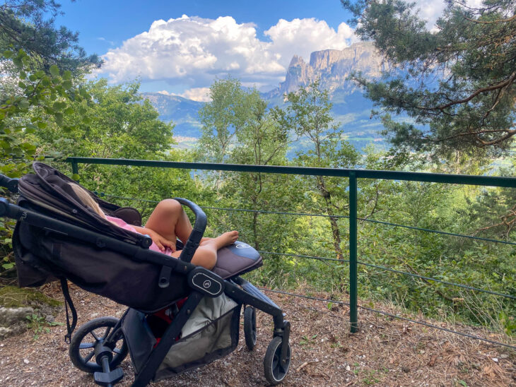L’ultimo tratto è in discesa e porta velocemente ai parcheggi. Se avete tempo girate a sinistra e andate a fare una giretto nel grazioso paesino di Collalbo, con tanti bar e ristoranti. Oppure potete proseguire fino alle piramidi di terra di Longomoso (ve le abbiamo raccontate QUI). In una mezz’ora arriverete facilmente alla meta, anche qui senza problemi con il passeggino.