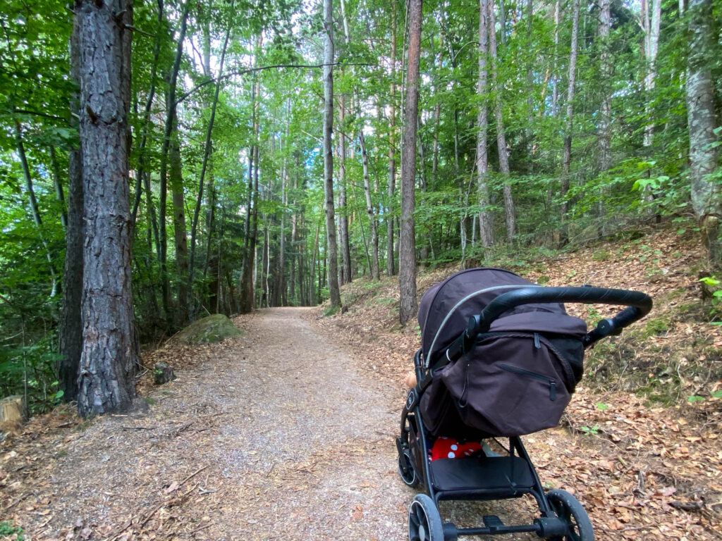 Breve, ma decisa per il primo tratto. Tenete duro, che poi spiana! Il fondo, sterrato ma compatto, vi farà fare poca fatica. Ci si inoltra quindi nel bosco: la passeggiata infatti è praticamente tutta all’ombra, perfetta nelle giornate più calde. Il bosco è rigoglioso ed alterna tratti più fitti con aperture panoramiche.