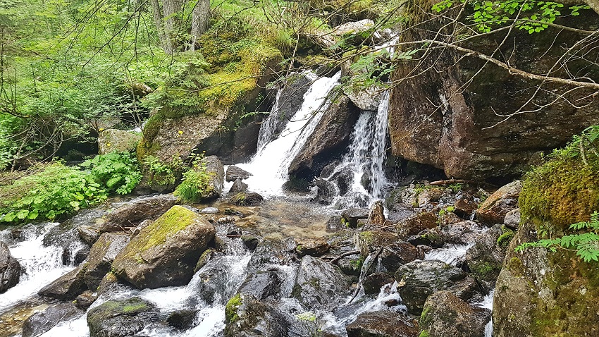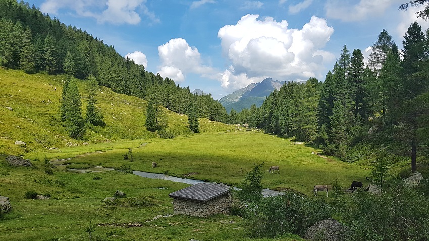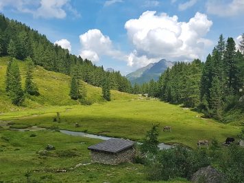 I primi venti minuti si snodano sulla comoda strada sterrata tra pascoli e mucche, fino ad arrivare al Ponte Campivelo a quota 1499 metri. Attraversato il ponte inizia il vero e proprio sentiero nel bosco che vi permette di raggiungere in circa un’ora abbondante di escursione la splendida vallata dove si trova il Rifugio Caldenave (1792 metri). Il sentiero prosegue sempre in salita e costeggia per gran parte del percorso il Rio Caldenave, sarete quindi accompagnati dallo scorrere dell’acqua e potrete ammirare alcune belle e suggestive cascatelle.