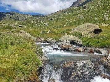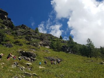 La salita lungo il “Sentiero degli Alpinisti” come detto in precedenza, è bella tosta ma con un po’ d’impegno e con lo splendido paesaggio che ci circonda si raggiunge il punto panoramico de la Palina a quota 2110 metri. Da qui ci si trova in un’ ampia e soleggiata vallata e si prosegue sempre in leggera salita costeggiando il versante sinistro del torrente Rabbies.