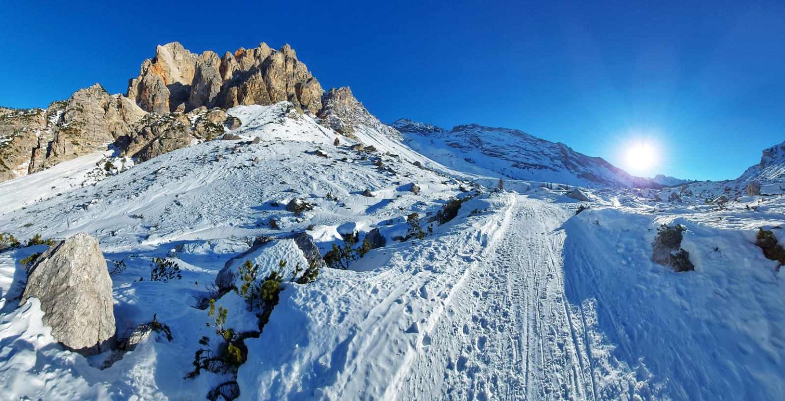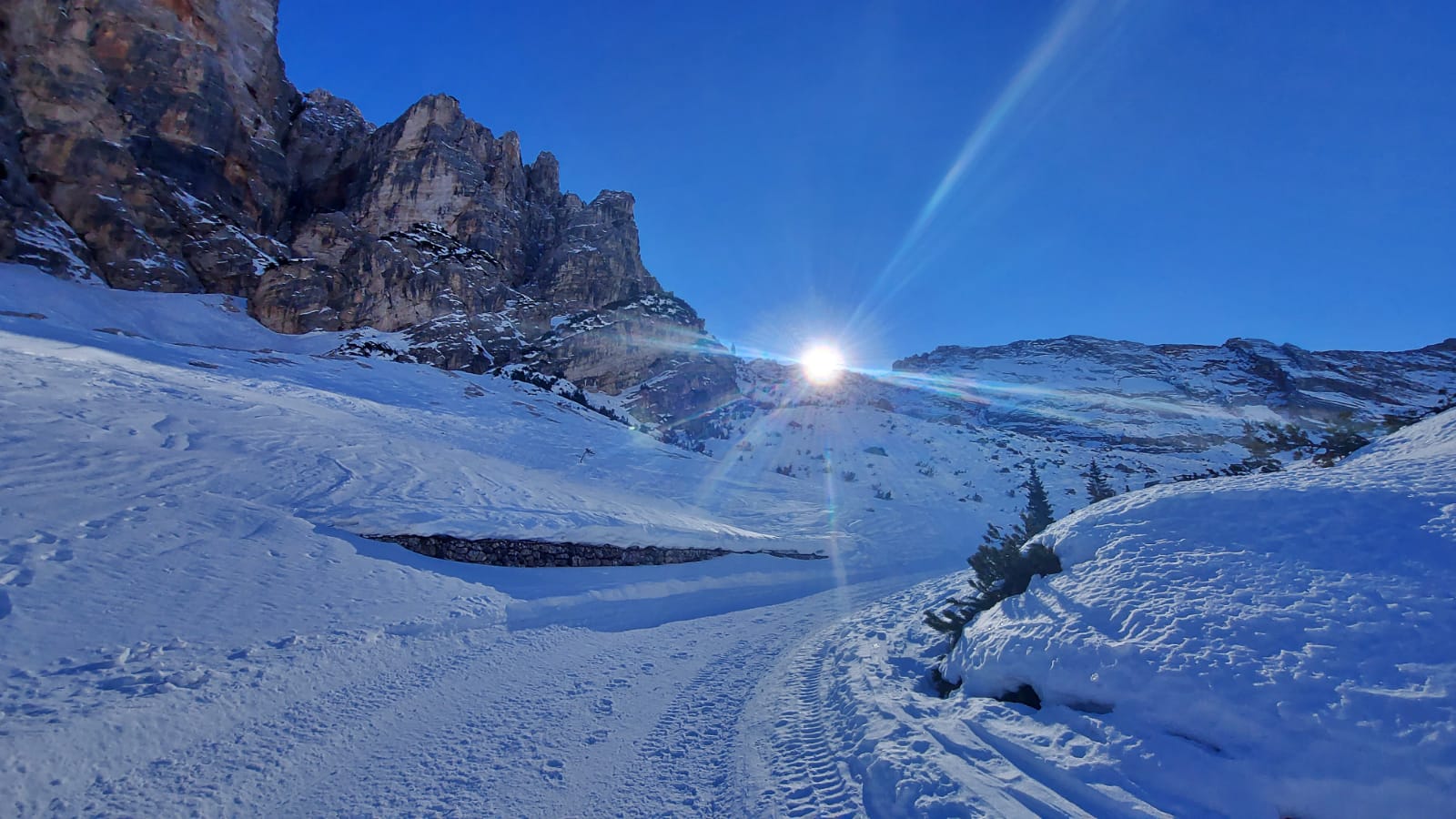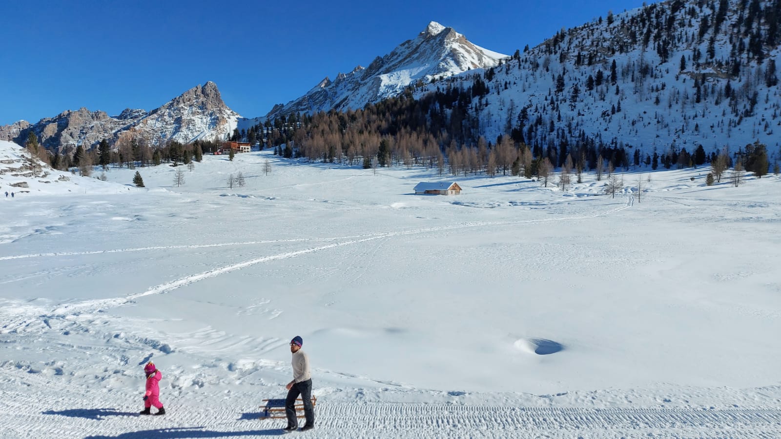 Una ventina di minuti d’auto dal delizioso paesino e si parcheggia gratuitamente nei pressi del Rifugio Pederù, a quota 1548 metri di altitudine. Qui ci si può fermare per colazione, così come a pranzo, e far divertire i bambini nel parco giochi all’aperto. Dal rifugio (dove si può anche dormire) parte la strada – sempre battuta in inverno – che porta in due ore abbondanti (anche di più con bambini abituati a camminare poco) e 550 metri di dislivello al Rifugio Lavarella, a quota 2050 metri.