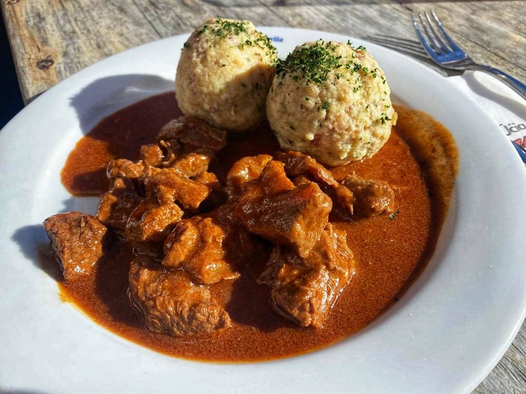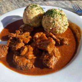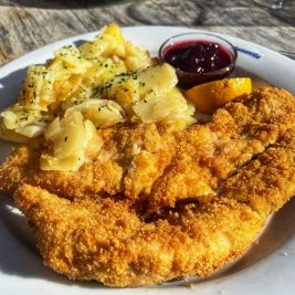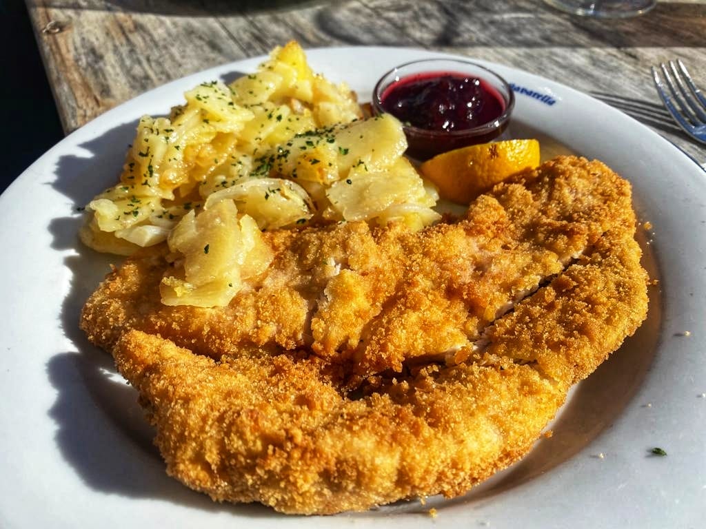Dopo esserci fermati al Rifugio Lavarella, abbiamo optato per un tavolo all’esterno, vista la bella giornata di sole, ed abbiamo mangiato uova, formaggio fuso e patate, canederli e una bella cotoletta di tacchino con patate saltate. Molto buoni anche i dolci.