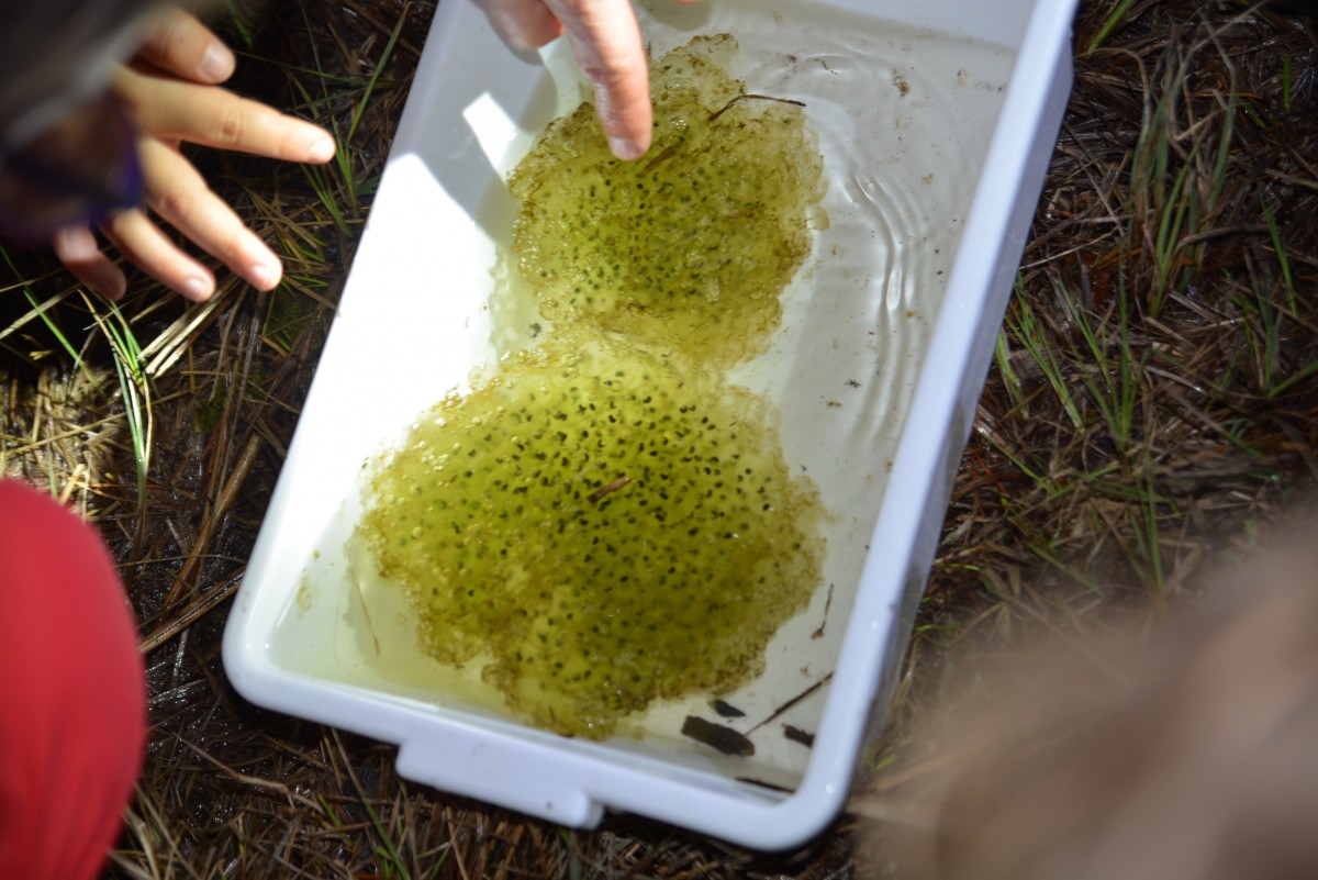 La prima cosa da dire è che, nonostante i tentativi di richiami non siamo riusciti a sentire i rapaci: troppe persone e troppo rumore, ci ha detto Sandro. Questi volatili sono cacciatori notturni, capaci di mimetizzarsi e di non farsi notare quanto avvertono un potenziale pericolo. Timothy ne è rimasto un po’ deluso, ma si è assolutamente ripreso quando, anche senza aver visto o sentito i rapaci, Sandro ha trovato due bei rospi e ci ha spiegato un po’ di cose su di loro. Ancora meglio quando ne ha scovato le uova, dischiuse e dalla consistenza gelatinosa e divertente, ma anche chiuse, confermando che quelle che avevamo trovato ai laghetti di Ruffrè erano proprio uova di rana. Son soddisfazioni!