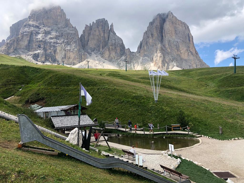 Se siete in Val di Fassa e salite con la funivia da Campitello al Col Rodella potete andare a piedi fino al Rifugio Salei (quota 2225 metri) in dieci minuti circa. In alternativa al rifugio si si arriva anche con una comoda passeggiata di 15 minuti da Passo Sella.