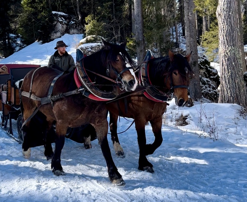 Salite a bordo della troika, la tipica carrozza trainata dai cavalli, mettete la copertina sulle gambe e partite con Walter alla scoperta del bosco innevato che circonda San Martino. Arriverete al cospetto delle Pale, dove vi fermerete per una breve sosta prima di fare ritorno. Due giri al mattino e due al pomeriggio fino a metà marzo circa. Maggiori info: In carrozza coi cavalli a San Martino.