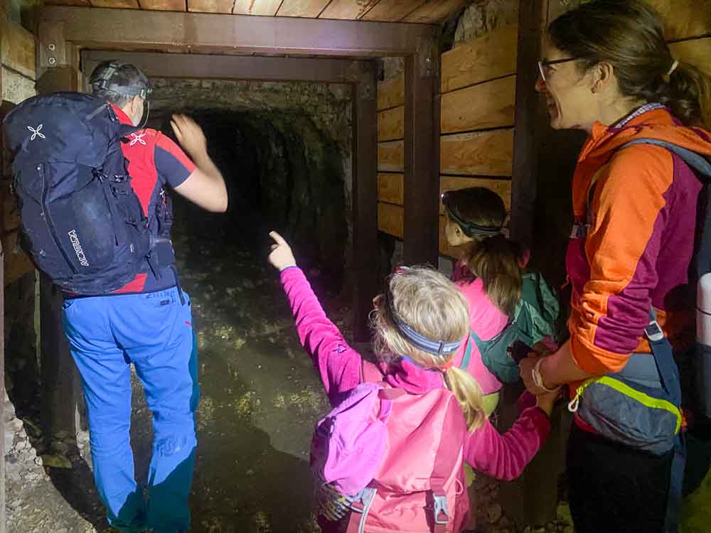 Cosa saranno mai? Sono delle gallerie risalenti alla Prima Guerra Mondiale, scavate sotto cima Borghetto. Risalgono al 1916 e sono opera dell’esercito italiano, anche se poi non vennero mai utilizzate (e da qui non partì nemmeno un colpo).