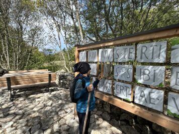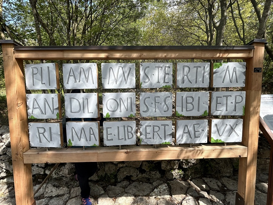 Eccoci arrivati alle ultime due tappe del Sentiero Archeologico a Cavedine. Cominciamo dall’epigrafe funeraria romana. Presso questo sito storico di grande interesse è stata ritrovata un’iscrizione funeraria, denominata localmente anche “carega del diaol” (sedia del diavolo) o trono della regina. Nei pressi dell’epigrafe è stato creato un grande memory in legno: girando correttamente le caselle viene riprodotta la frase in latino riportata sulla tomba.