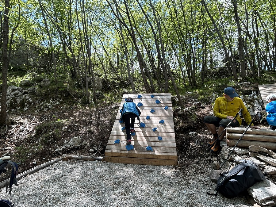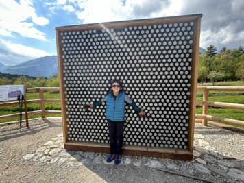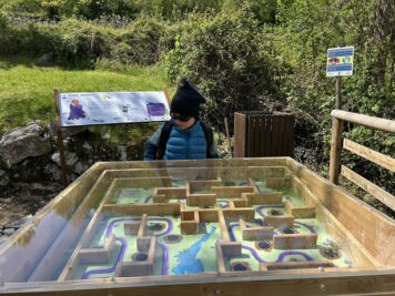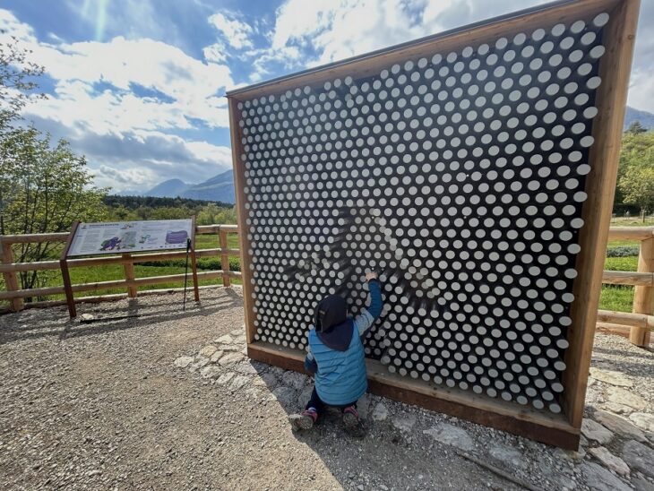 Noi ci siamo divertiti un sacco a spingere avanti e in dietro i tubi cercando di seguire la sagoma del corpo. Da quest’ultima postazione in circa una ventina di minuti si ritorna a Cavedine giungendo dalla parte alta del paese, dove è possibile ammirare la grande chiesa dall’alto.