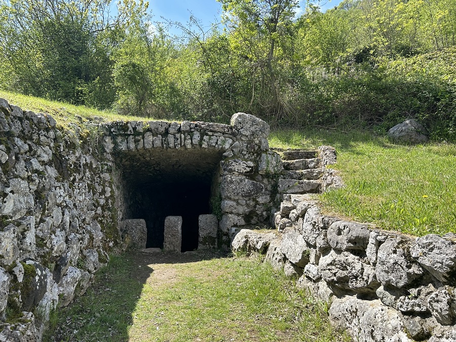 E allora via Si parte alla ricerca della fonte romana, la nostra prima tappa. Si raggiunge in poco tempo lungo una strada sterrata immersa nel verde, tra campi coltivati e lunghi muretti a secco che la delimitano.