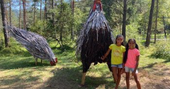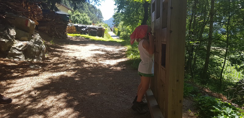 Il parco giochi indicato alla fine del percorso è una grande area con capanne di tronchi, rami e pigne. Un bel posto per far scatenare la fantasia dei più piccoli e riposare un po’ all’ombra.