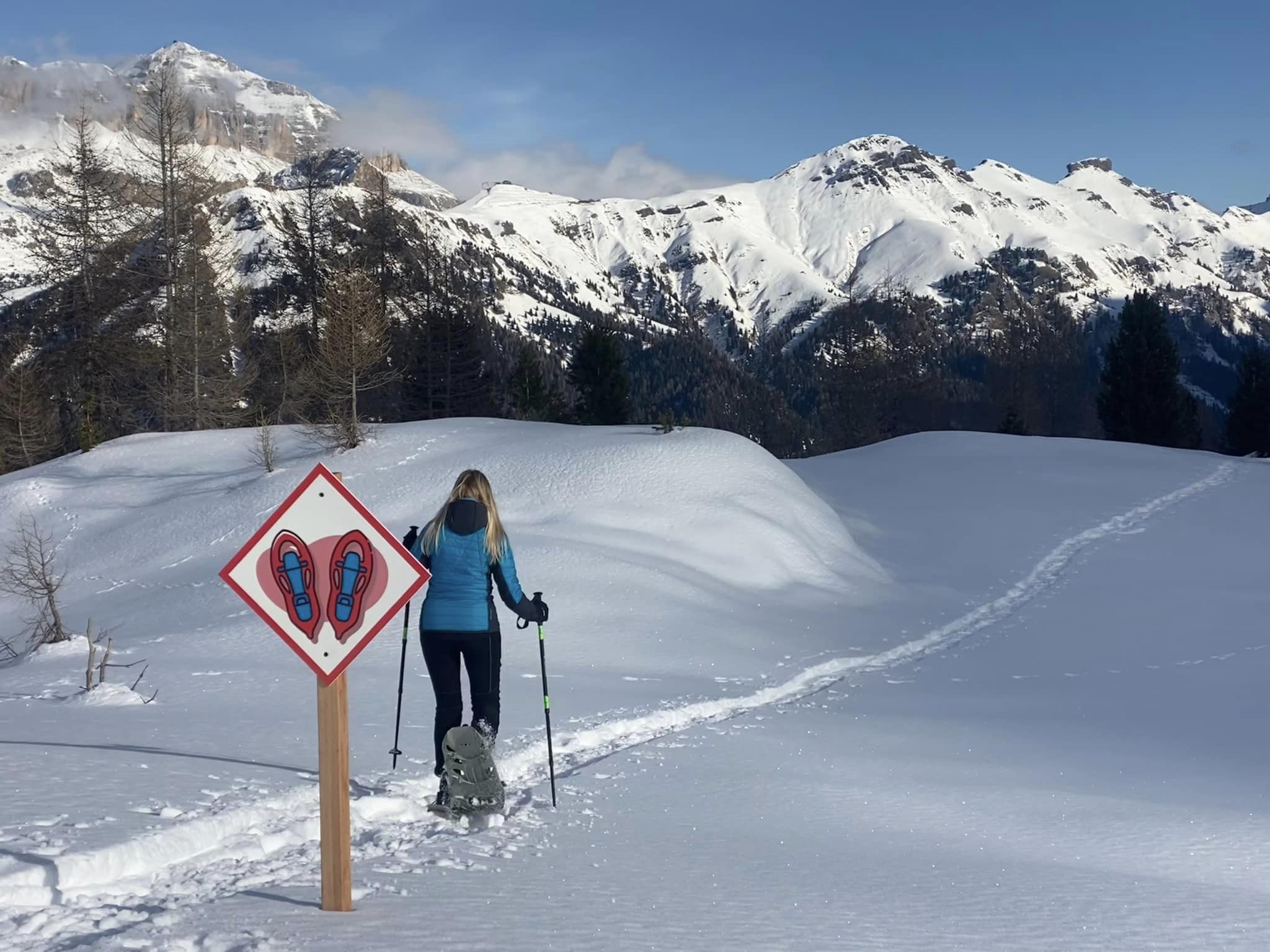 Un tracciato panoramico ad anello di circa 3 chilometri nel cuore delle Dolomiti. Facile e perfetto anche per famiglie, si sviluppa alle pendici del monte Colac. Si snoda in una conca soleggiata ed è fattibile in un’ora abbondante, tra ponticelli in legno e viste mozzafiato sul Gruppo del sella e il Piz Boè. Il percorso è praticabile autonomamente ogni giorno ed è fattibile anche senza ciaspole se non ha nevicato di recente e con temperature basse, la strada è ben battuta. Attenzione: consigliato noleggiare le ciaspole a Canazei.