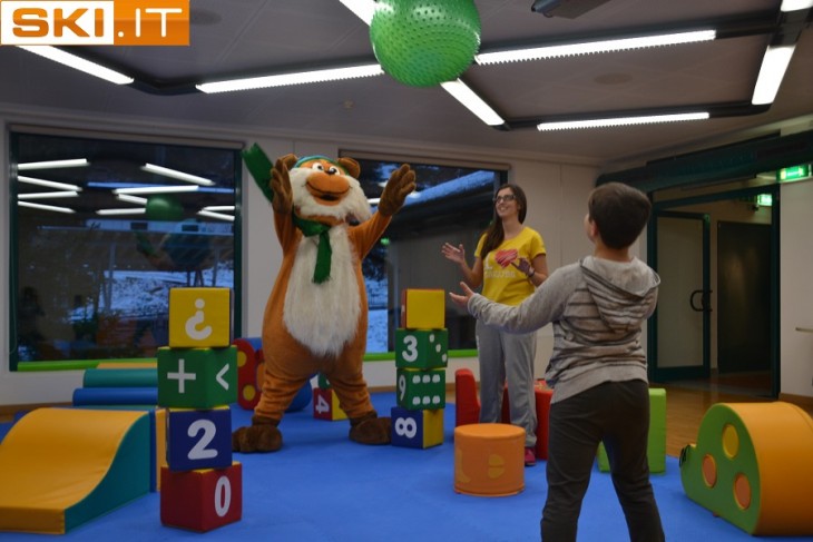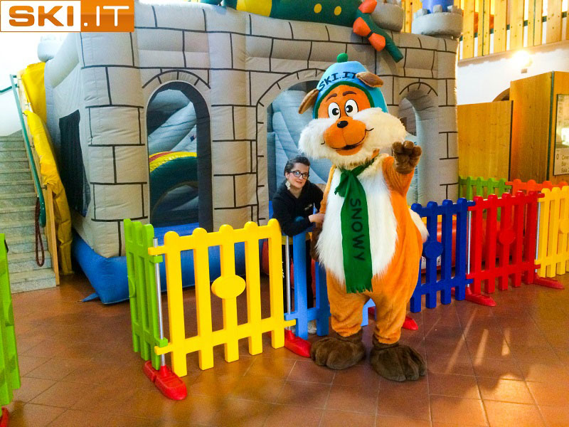 Arrivati al primo piano ci siamo subito resi conto di quanto sarebbe stato difficile convincere Bianca ad uscire dallo SKI.IT Family Center… ci siamo rimasti più di due ore! Abbiamo trovato infatti davvero molti giochi, un grande gonfiabile pieno di palline colorate, un tappeto elastico e una colorata area mini club. Qui gli animatori propongono ogni giorno baby dance, laboratori manuali, giochi di squadra, trucca bimbi ecc. Se siete fortunati (e noi lo siamo stati!) potrete anche incontare i beniamini dei vostri bambini in “pelo ed ossa”! Sicuramente non mancherà Snowy la volpe mascotte della skiarea Folgarida Marilleva, ma in suo compagnia potrebbero anche arrivare altri personaggi del mondo delle fiabe…