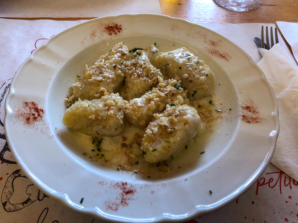 Per mangiare, comodissima la vicinanza della malga con i suoi buoni piatti tipici: gnocchi di polenta, ragù di cervo, polenta e carne. Il locale potrebbe essere particolarmente affollato, soprattutto in occasione di festività e weekend, ma si mangia bene e si sa che non c’è modo migliore che sedersi a davanti a un buon piatto per riprendere le energie e riscaldarsi un po’.