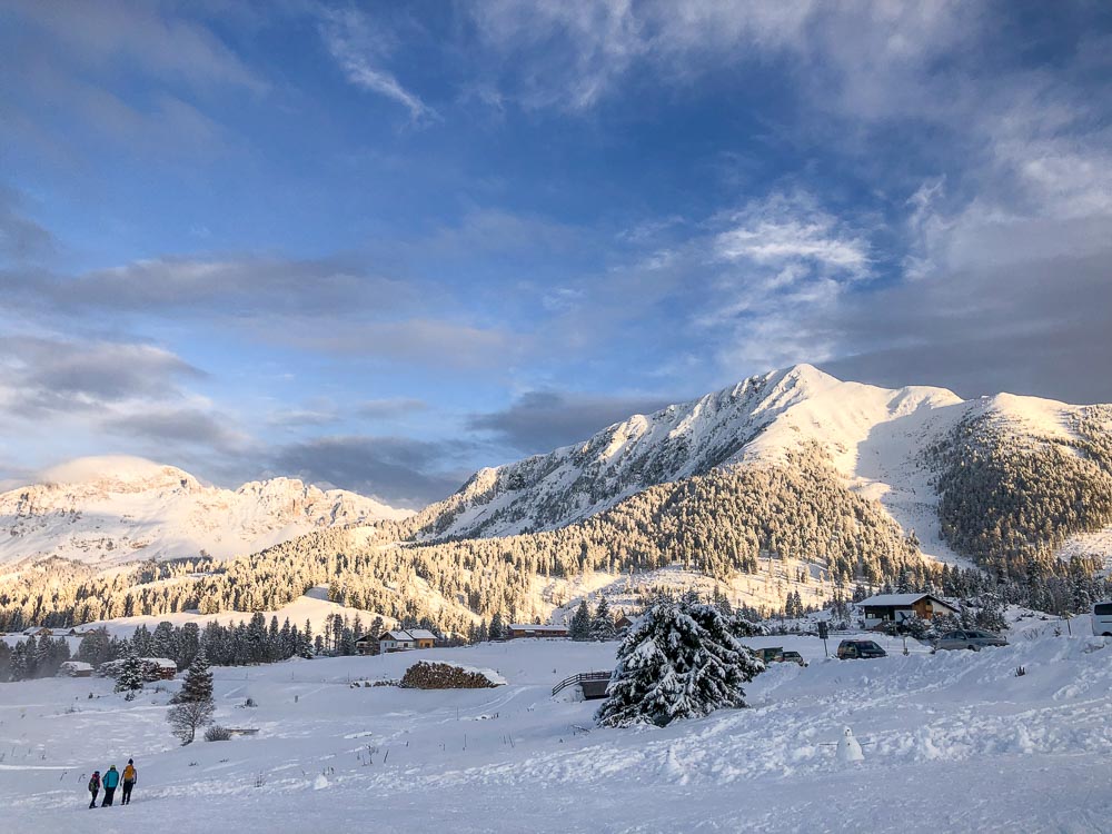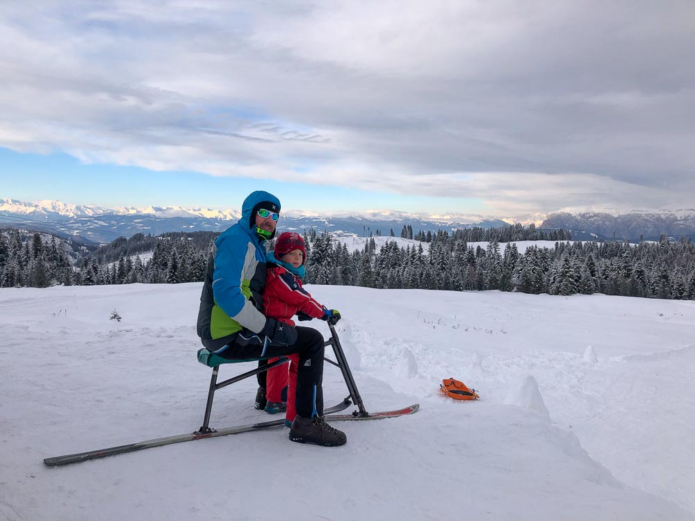Il posto è facilmente raggiungibile con la macchina (si trova proprio sulla strada) e quindi, volendo, anche con i passeggini. Il nostro suggerimento però è quello di fare la passeggiata di circa 15 minuti che collega il parco giochi sulla neve con il comodo parcheggio che si trova al passo. La camminata non è per nulla impegnativa e regala un bel panorama!