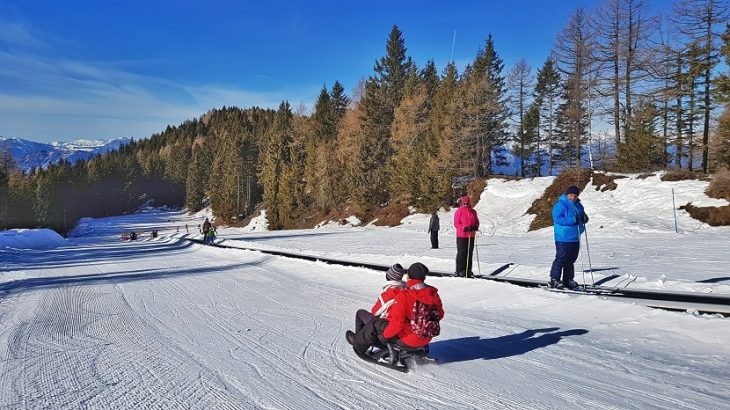 La Pista Furet in Panarotta è sicuramente uno spazio ideale per i bambini che si vogliono divertire sulla neve con lo slittino, ma anche per muovere i primi passi sugli sci: dispone infatti di un tapis roulant che divide la discesa in due comode piste, una dedicata alle slitte ed una per imparare a sciare. Per tutte le info sulle aperture e le condizioni della neve cliccare QUI.