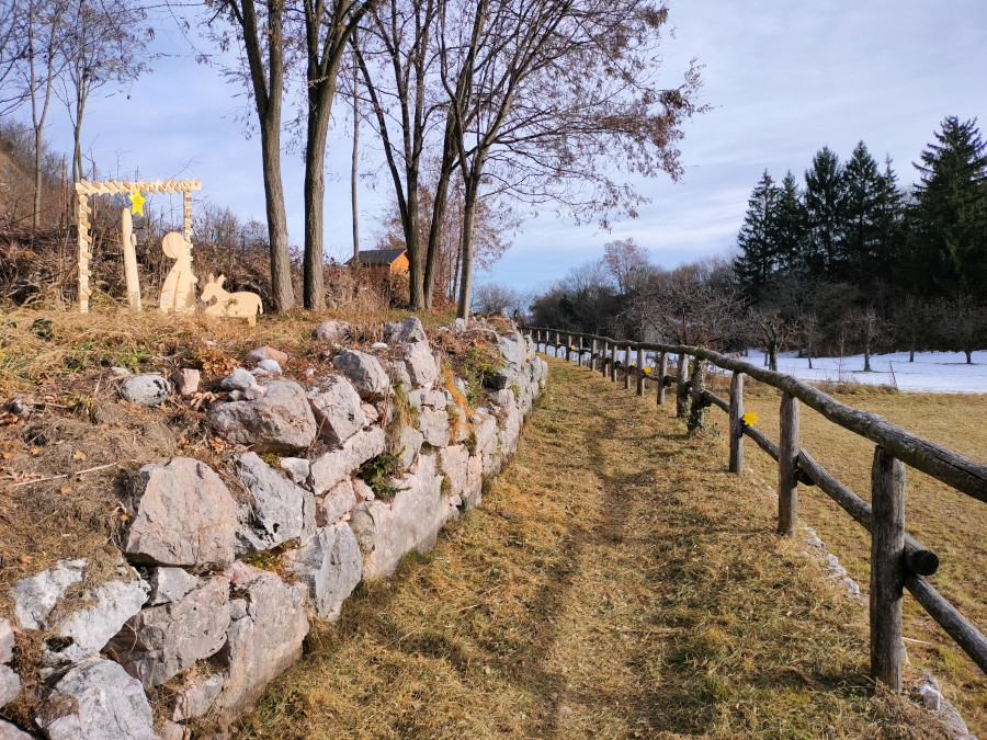 Inizialmente si cammina su strada asfaltata, attenzione al passaggio delle macchine, dove si trovano tanti originali presepi su entrambi i lati. Le Natività sono sempre ben segnalate da grandi stelle gialle che indicano da chi sono state realizzate. In ogni caso aguzze la vista che alcuni presepi sono “nascosti” tra i rami degli alberi o nei muretti a secco. Si prosegue con una leggera salita che regala qualche scorcio sul paese e sulle montagne circostanti. La seconda metà dell’itinerario continua su strada sterrata chiusa al traffico sempre accompagnata dalle opere. Quindi solo la prima parte è percorribile con il passeggino.
