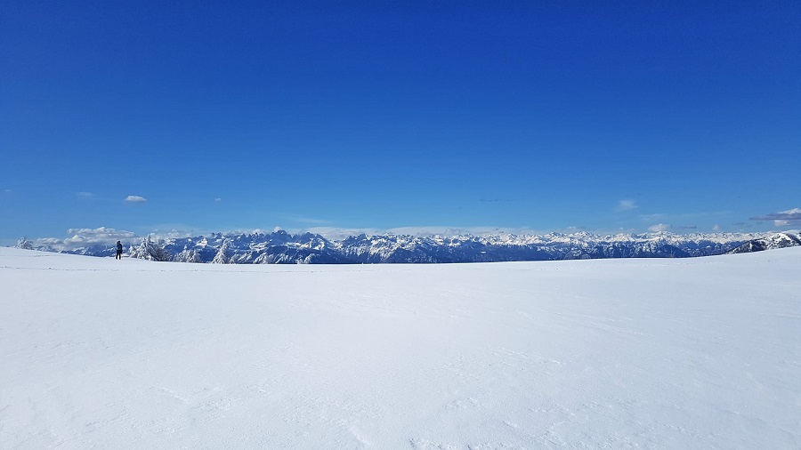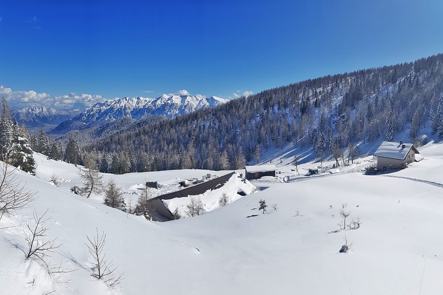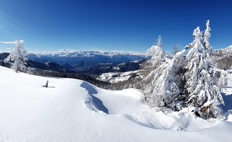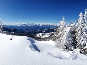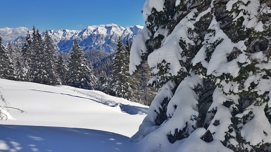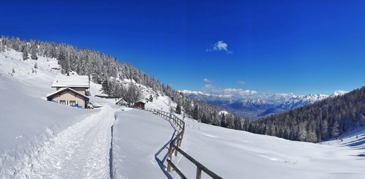 Dopo una mattinata trascorsa a slittare sulla pista Furet in Panarotta, la voglia di indossare le ciaspole e godersi in tutta tranquillità gli splendidi panorami che offre questo territorio era davvero troppa per rinunciare. La neve, il sentiero nel bosco e gli scorci sulle Dolomiti di Brenta che si moltiplicano passo dopo passo hanno reso subito avvincente e speciale l’itinerario che ha come punto di partenza lo Chalet Panarotta sulle piste da sci e come punto d’arrivo Malga Masi, passando per conca de La Bassa, evidente insenatura che divide la Panarotta dalla cresta del Fravort.
