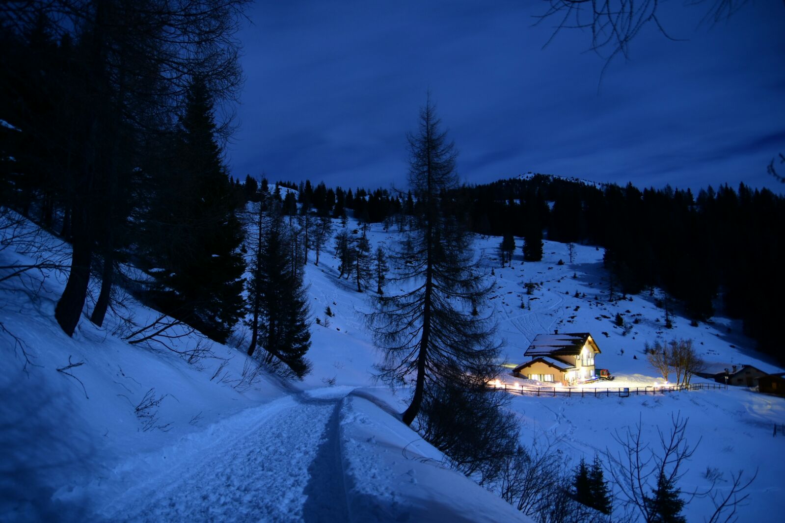 Partendo da Trento raggiungete la località Vetriolo Terme, passando da Levico. Sono circa 40 minuti di macchina che vi permetteranno di arrivare al parcheggio proprio di fronte al’inizio della salita che porta a Malga Masi. Noi, vista l’abbondante nevicata, abbiamo utilizzato le ciaspole, anche se Claudio, il gestore batte sempre il percorso con il gatto delle nevi, quindi consigliamo di fare una telefonata (📞 340 4988781) per avere le informazioni sulla situazione. Il percorso sempre su ampia strada forestale è caratterizzato da un primo tratto in leggera e costante salita, mentre nella seconda parte è prevalentemente pianeggiante fino alla breve discesa che porta alla malga.