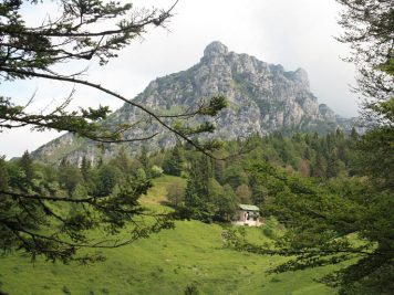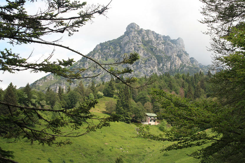 Questo percorso è adatto anche ai passeggini (da trekking possibilmente), ma nella stagione invernale meglio sempre contattare il rifugio per avere informazioni precise sulle condizioni del sentiero. Un volta usciti dal bosco vi troverete al di sotto della Mazza di Pichea, la singolare cima frastagliata che domina il paesaggio, a cavallo tra la Valle di Ledro e il Lago di Garda. Proseguendo dritti da qui si scende verso Malga Grassi , mentre svoltando a destra potrete già intravedere il Pernici, che si raggiunge in 5 minuti.