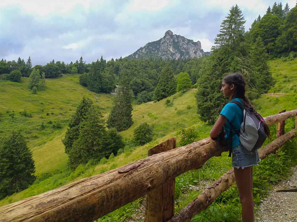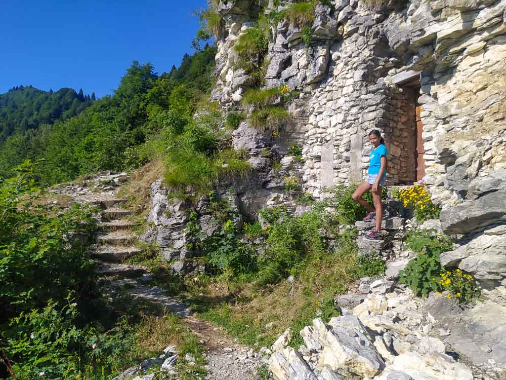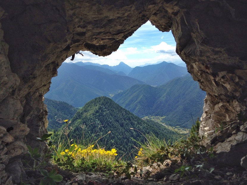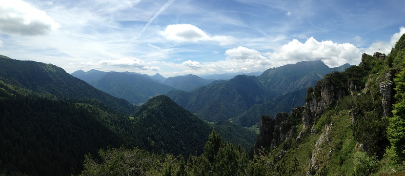 Siccome poi ci piace curiosare un po’ anche nei dintorni ci siamo diretti verso la Bocca di Saval, proseguendo oltre il Rifugio: spettacolare la vista, con un percorso abbastanza pianeggiante, bello da fare anche coi bambini (ma non con il passeggino): si incontrano alcune trincee e grotte e poi il sentiero entra nel bosco.