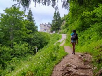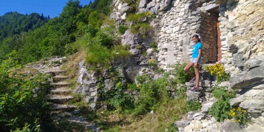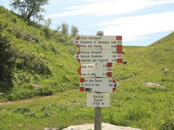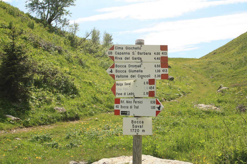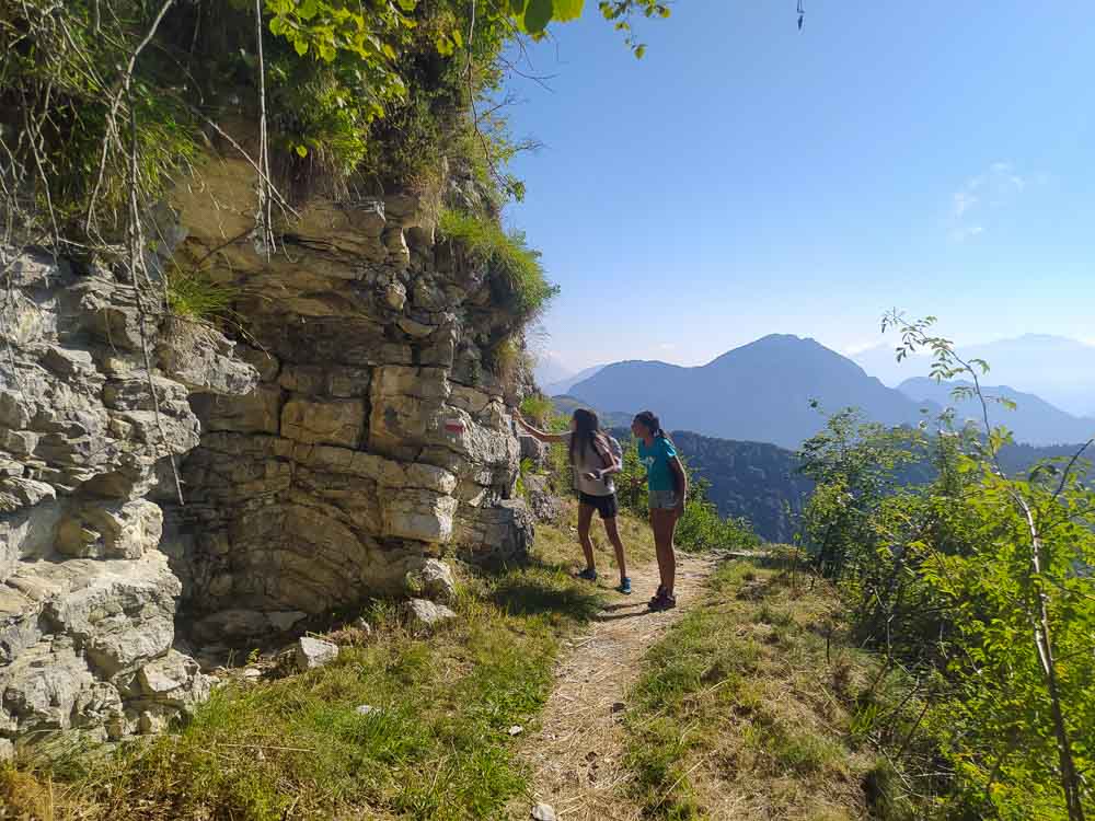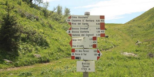 - Per tornare a Malga Trat si può anche completare un percorso ad anello di circa 2 ore e mezza di passeggiata (non adatto a passeggini), ma senza dislivelli rilevanti. In una parola? Bellissimo! Se siete una famiglia abituata a camminare è l’ideale e vi porta a scoprire tutta la bellezza della Valle di Ledro. Seguite il percorso fino a Bocca Saval e da qui svoltate a destra lungo i pascoli in fiore e fino a giungere al Bochét de Carét. Da qui potete prendere direttamente il percorso che porta alla malga o (ve lo consiglio) deviare verso la croce. Lungo questo versante sono ben visibili gli antichi trinceramenti e potrete anche godere dello splendido panorama sul Lago di Ledro.