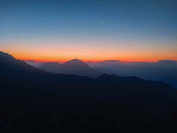 Ci ha svegliato il chiarore della luna verso le 4.30, mentre il cielo si stava già preparando all’alba con incredibili sfumature di arancio, rosa e blu… E poi, alle 5.45 ecco il sole fare capolino da dietro il monte Stivo. Anche le più dormiglione hanno aperto gli occhi e si sono lasciate affascinare da questo piccolo miracolo quotidiano.