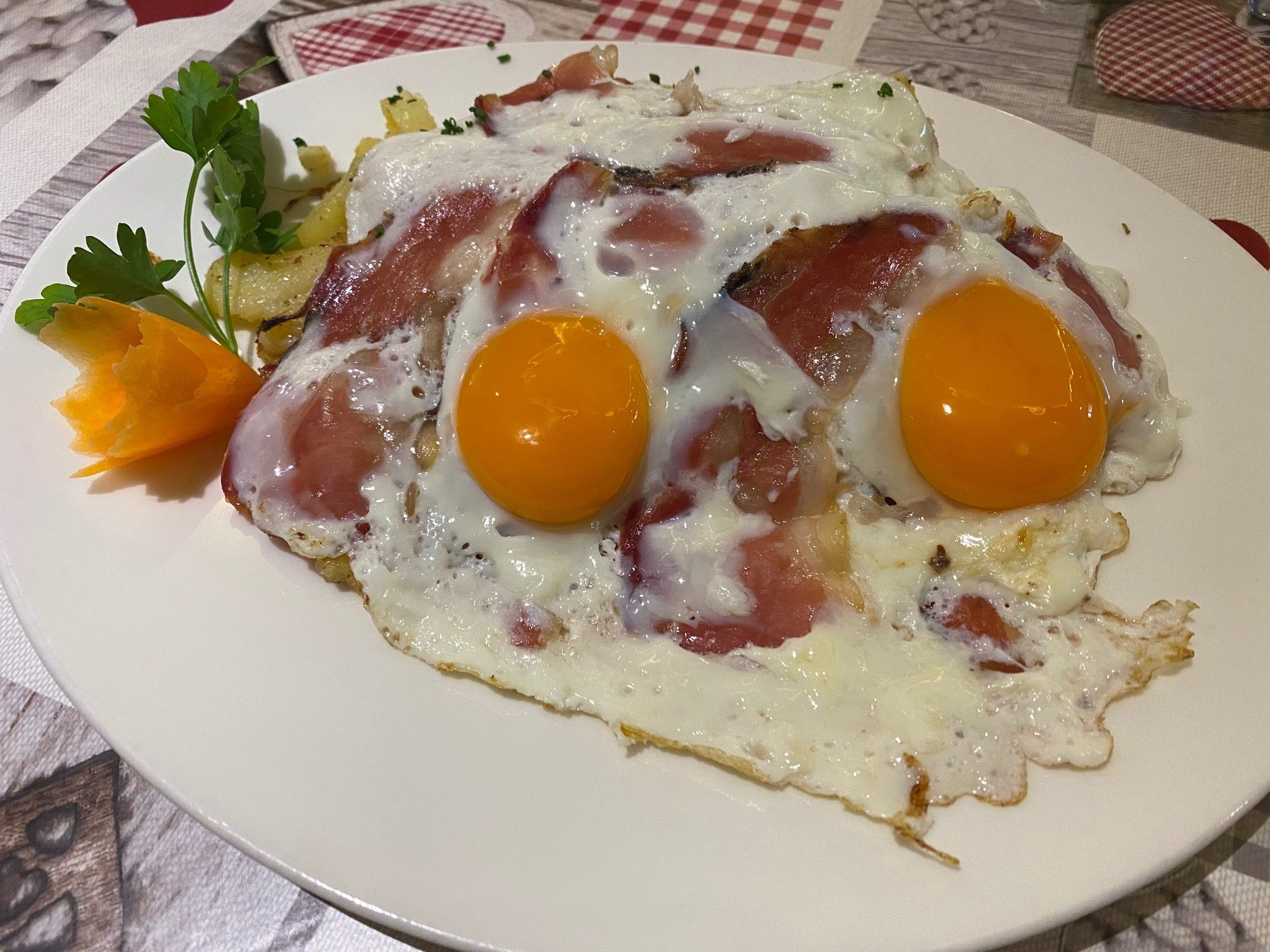 Non mancano i grandi classici della cucina di trentina di montagna, come uova, speck e patate. Da non perdere anche i loro fantastici dolci, tra cui i nuovi cruffin, croccanti fuori e con un morbido ripieno. Il tutto condito dalla simpatia della famiglia Riz, che gestisce il rifugio dal 2011, e dei suoi ragazzi.