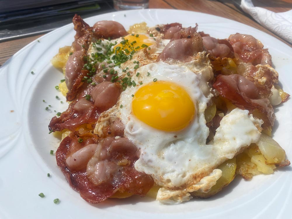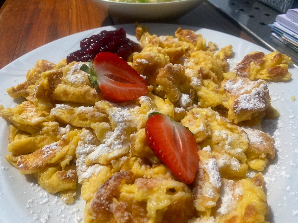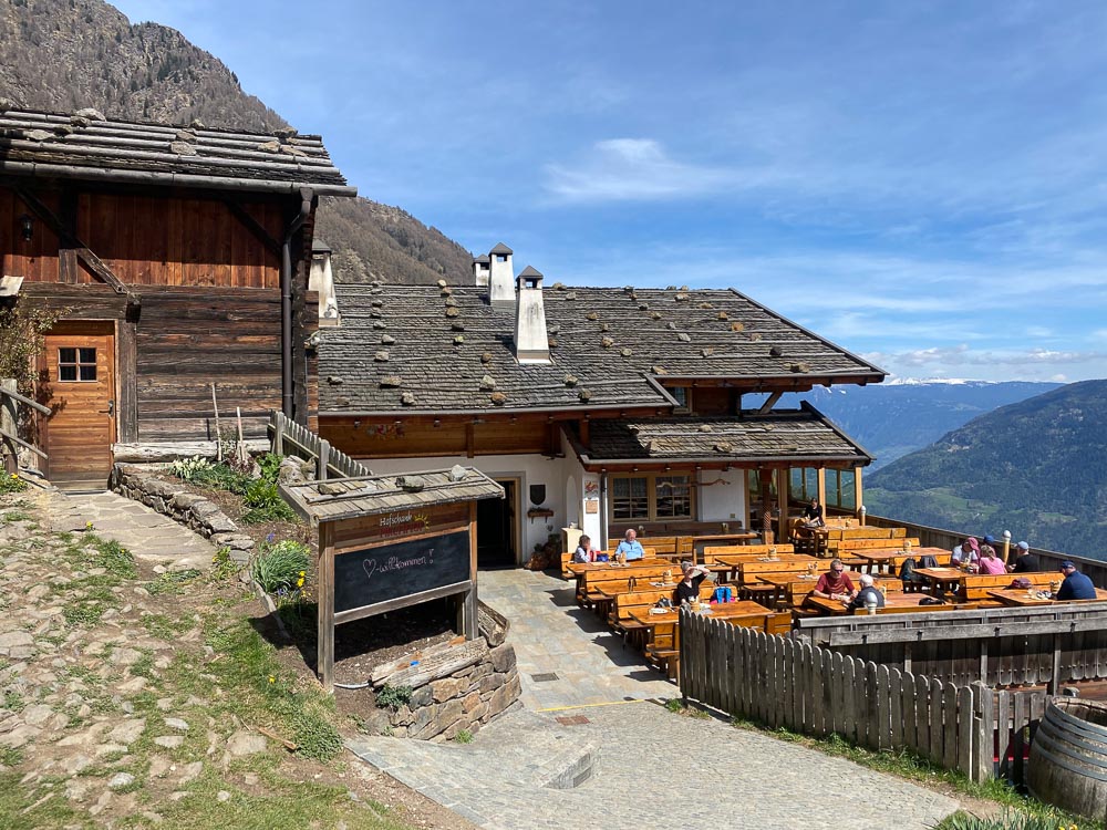 Chi vuole camminare ha diverse possibilità, ad esempio fare un bel giro ad anello salendo prima per una mezz’ora (salita decisa, no passeggini) verso Maso Lint a 1464 metri. Questa è una sosta culinaria consigliata: ristorante molto curato, alcuni giochi per bambini, bella terrazza con vista e piatti dell atradizione sudtirolese davvero gustosi. Noi abbiamo preso un ottimo piatto di speck, uova e patate saltate e poi il classico Kaiserschamarren, gustoso ed abbondante.