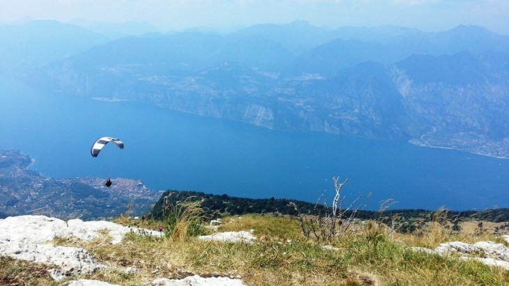 Ancora una mezz’ora, attorniati dai tanti deltaplani in volo e questa volta in salita, per raggiungere l’arrivo della funivia che sale proprio da Malcesine.