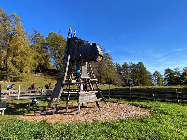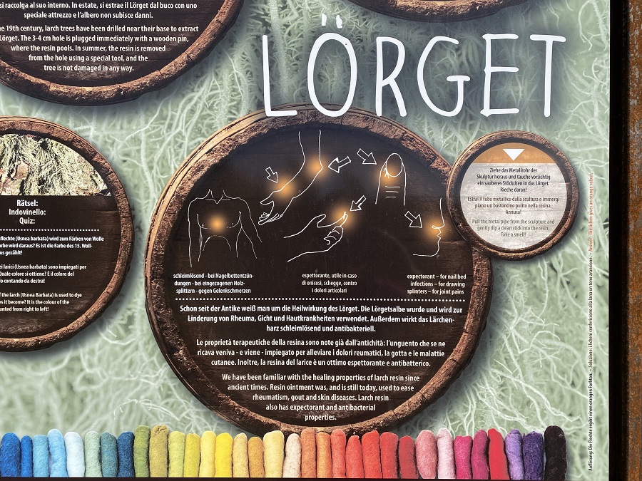 Lungo questo sentiero troverete diverse stazioni dedicate a cavalli e larici, i protagonisti di questo magico luogo. Alcune sono delle semplici tabelle esplicative con curiosità e aneddoti che piacciono sempre molto ai bambini: la velocità massima raggiunta da un cavallo, l’ ampiezza del suo campo visivo, le proprietà terapeutiche della resina... Altre invece prevedono dei piccoli giochi, come cavalli a dondolo e tavole in legno.