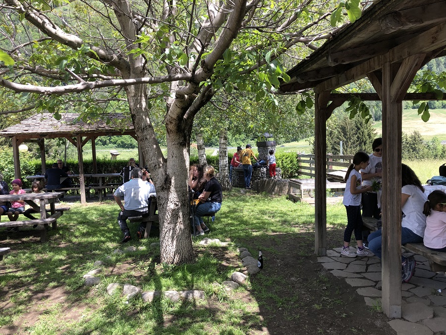 Per recuperare le energie e sgranchire le gambe abbiamo scelto di pranzare al Ristorante Bucaneve a Commezzadura: si trova lungo la ciclabile, ma con accesso anche dalla strada principale. Un posto a misura di bambino con ampio spazio verde con giochi, scivoli e prati per correre e divertirsi. Si mangia bene e il menù è molto vario: primi piatti, piatti di carne, vegetariani, pizze, cheeseburger e tanti dolci. L’imbarazzo della scelta! Super anche l’accoglienza e la simpatia dei proprietari.