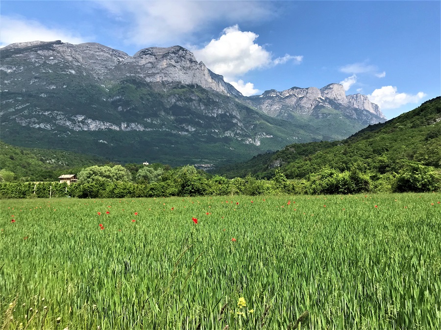 Il percorso è immerso nella natura con verdi prati punteggiati qua e là da rossi papaveri. Una passeggiata ideale per una giornata rilassante all’aria aperta.