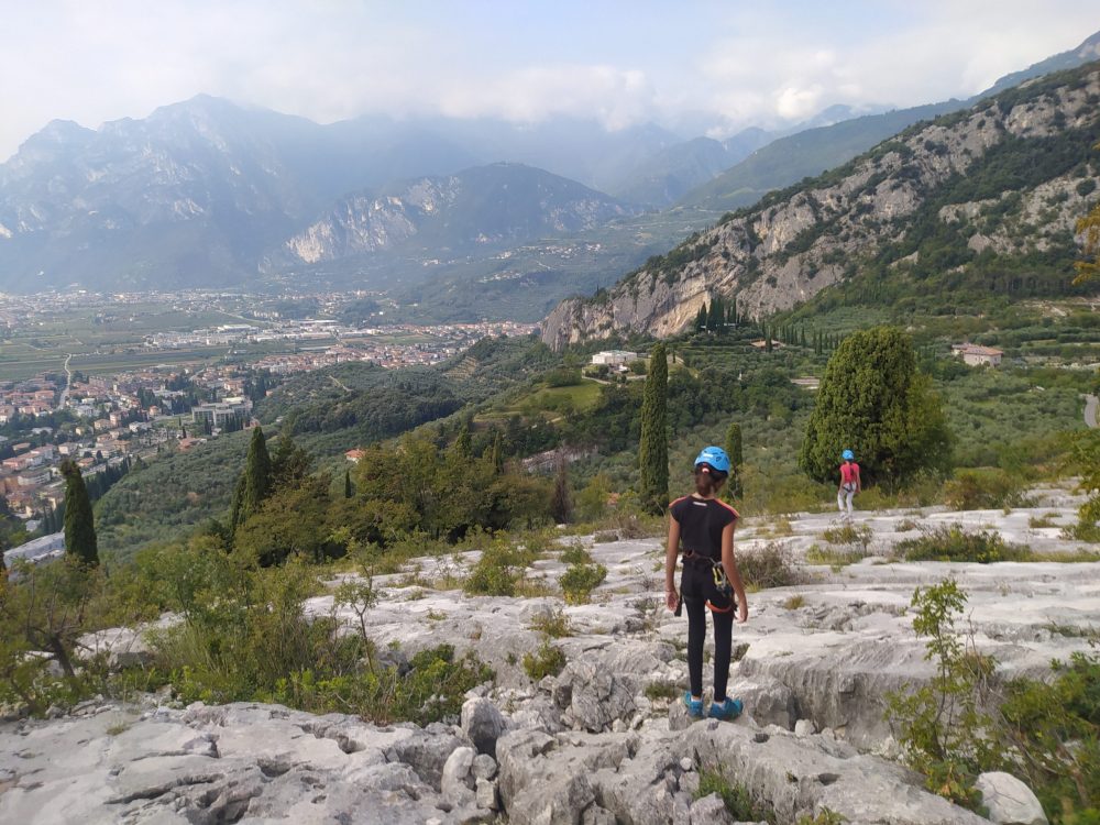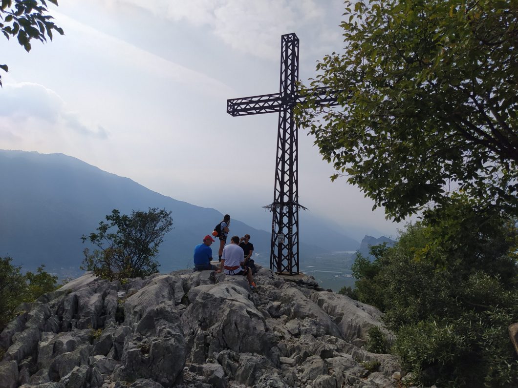 Già perché la ferrata è talmente scenografica e coinvolgente che sarà quasi un peccato rendersi conto di essere già arrivati sulla sommità del Colodri… il panorama, quasi a 360°, che si aprirà di fronte ai vostri occhi spazia dalla valle del Sarca, alla rupe del Castello di Arco, al Monte Brione fino ad arrivare, naturalmente, al Lago di Garda con tutte le montagne che lo circondano.