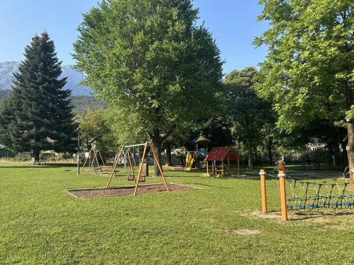 Oltre a questa attrazione ci sono un sacco di altri giochi, molto curati e sicuri, adatti anche a bambini più piccoli. Una struttura colorata con casetta e due scivoli di diverse altezze, varie altalene, anche per piccolissimi, …