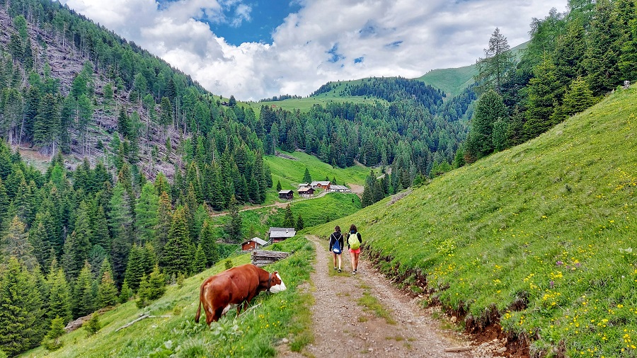 Partendo dalla malga si può passeggiare fino al Pian delle Maddalene o fino a Passo Sadole.