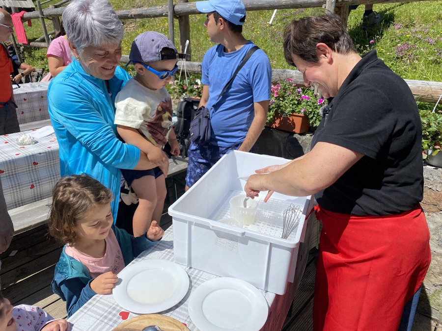 Domenica – Vivi la malga | Tutte le domeniche dopo pranzo c’è un’altra possibilità di visita alla malga con papà Lino. Un giro ampio dove si impara il bosco, il pascolo e l’ambiente della malga. Il racconto della flora e della fauna dei dintorni, le api, la raganella di montagna, la formica rufa e tanti altri animali e storie. Il pomeriggio si conclude con la prova di mungitura nella stalla. L’attività è possibile anche per gruppi numerosi. Per partecipare all’attività di fattoria didattica è consigliabile prenotare.